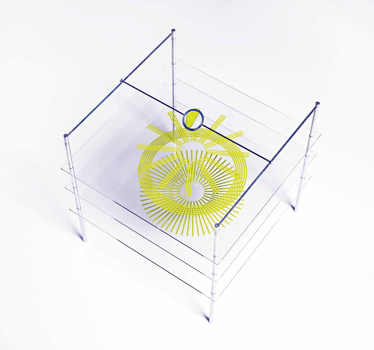 注2)ロトデッサン:盤面に固定された紙を盤面ごとモーターで回転させ、その紙に鉛筆などで線を描いて回転運動を視覚化させた作品。装置の改良に伴い螺旋状のものから同心円状に変化した。デュシャンの「回転半球」「ロトレリーフ」、ティンゲリーの「メタマティック」(自動デッサン機)などとの関連性を思わせる。店名への使用許可に対するデュシャン宛て礼状にも、ロトデッサン1葉が同封されていた。