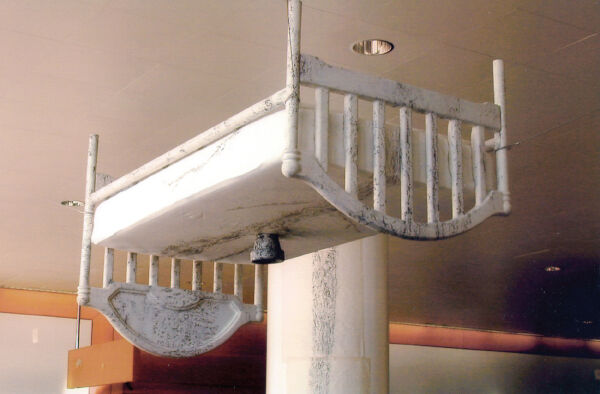 2001年 オブジェ(和紙、木炭、ベッド、植木鉢、枝、ワイヤー)