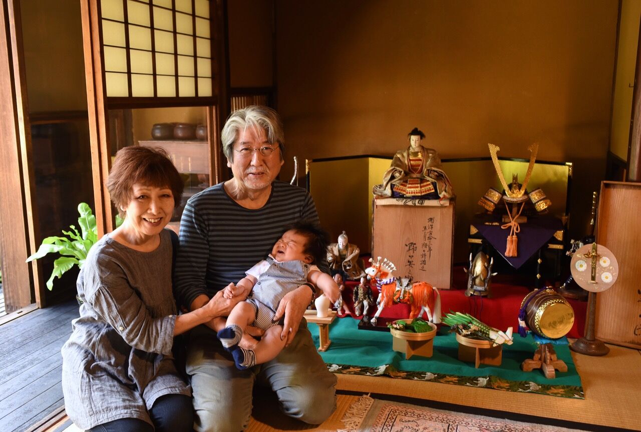 応神天皇の帽子や扇子など色々と無くなっていたり、父が子供の頃にいたずらをして髪がボサボサになっていたりしますが、こうやって何代も受け継がれてきた人形があって、息子の為にそれを出して記念写真を撮るというのは感慨深いものがありました。