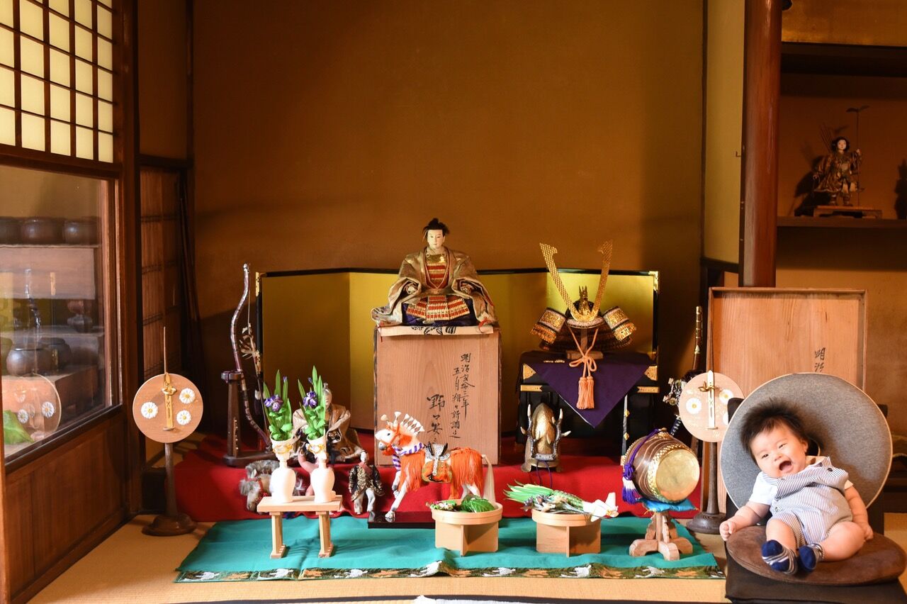 相変わらず毎日コロナウィルスのニュースばかりの日々ですが、5月5日は息子の琳太郎の初節句だったので、明治23年、130年前に箔屋野口の初代 安之助が二代目 安三の初節句の祝いに送った五月人形を何十年ぶりに出して記念写真を撮りました。