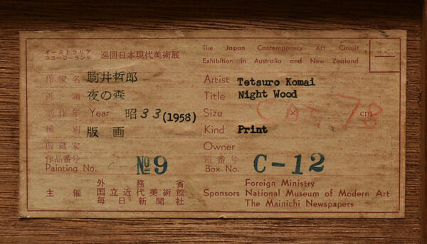 ※1958年オーストラリア、ニュージーランド巡回日本現代美術展のシール付き