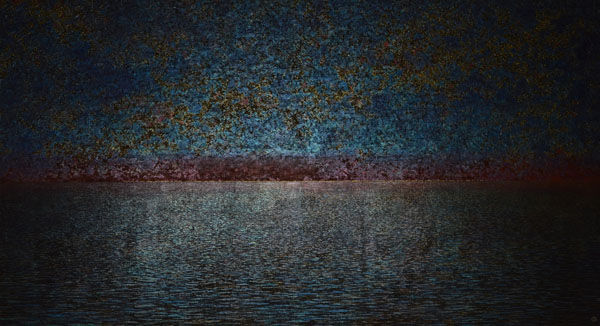 箔画/木パネル、漆、金・銀箔、石炭、樹脂、アクリル絵具