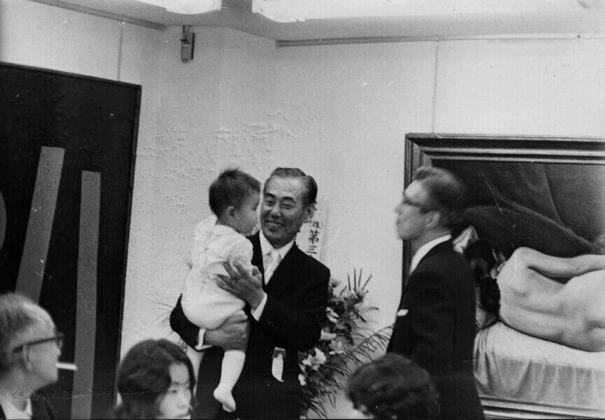 図4 壁面に山口長男《五つの線》(左)と仙波均平《裸婦》(右)。中野画廊開廊の時。1973年