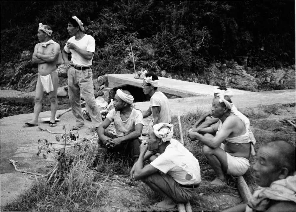 佐賀県唐津市鎮西町加唐島。台風一過、出漁を待つ漁師たち。1962年8月9日。