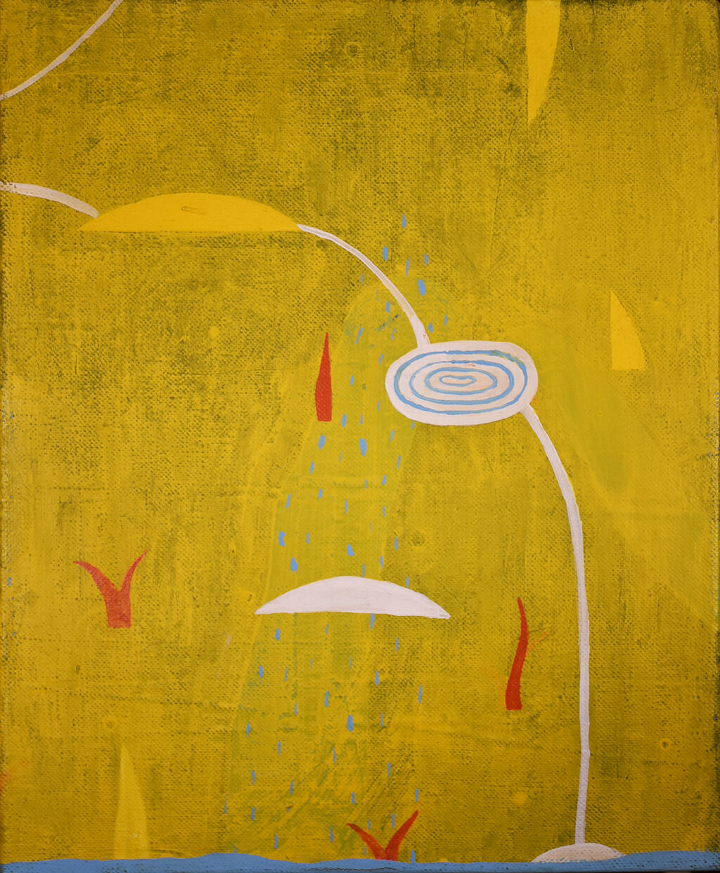 私は美しい岩絵具に見せられ日本画を学び、自然を観察するのが楽しく「美しい」色が好きでした。ただ、ある瞬間から「綺麗な」絵が描けなくなってしまいました。自分の作品を塗りつぶしたり、破ったり、を繰り返している時期の作品は、当時の私の状態を表しています。それでも、ある「空間」の中に「時間」の中に、想像を馳せることで、現実と折り合いをつけてゆくことを学んだ貴重な時期だとも言えると思います。以下にその時期の作品を2点ご紹介します。