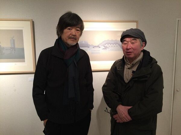 2017年ギャラリーせいほうでの二人展にて、六角鬼丈先生と植田実先生(Photo by 六角美瑠)
