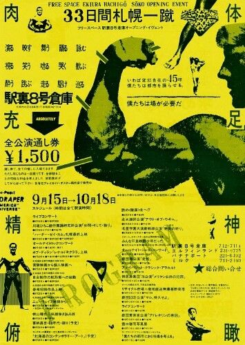 札幌での1981年のもう一つのできごと、それは9月の駅裏8号倉庫のスタートであろう。実際には、翌年札幌を離れてしまった私にはそれほどの思い入れはない。しかし、このスペースは札幌でのサブカルチャーシーンをリードする空間であったようであり、今や伝説のように語られる存在のようだ。駅の北側にあった軟石づくりの倉庫を活用、劇団が共同で運営する劇場としたのがスタートであるが、芝居を公演しないときには映画上映、音楽ライブ、文学・政治・美術に関する議論の場として活用されることになった。大学4年で就職を控えていた時期であったので、私はほとんどのイベントに参加できていない。アイヌと琉球との対話では朝まで議論が続いたときいた。その運営初期のころだと思うのだが、柴橋伴夫の企画運営により現代美術シンポジウムが開催された。柴橋から依頼があって美術を見る側の立場で出演してほしいと言われた。主賓はヨシダヨシエだという。テーマは「都市と自然」であった。たまたま学生時代のいきつけの喫茶店であった「異邦人」が事前の打ち合わせの場所として指示され、そこでヨシダヨシエや当日のほかの出演者と会った。NDA画廊の長谷川や大学の先輩で画家である佐々木方斎などがパネラーだった。シンポジウムになってからのヨシダの言説は一貫しており、その論理は鋭かった。長谷川も佐々木もどんどん論破されていったのを覚えている。