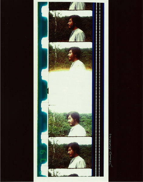 初来日の折の版画制作がきっかけで、メカスさんが1980年代以降、精力的にとりくんだのが自身が撮影した16mmフィルムから数コマを選び、写真として焼きつける「フローズン・フィルム・フレームズ 静止した映画」と呼ばれる仕事です。