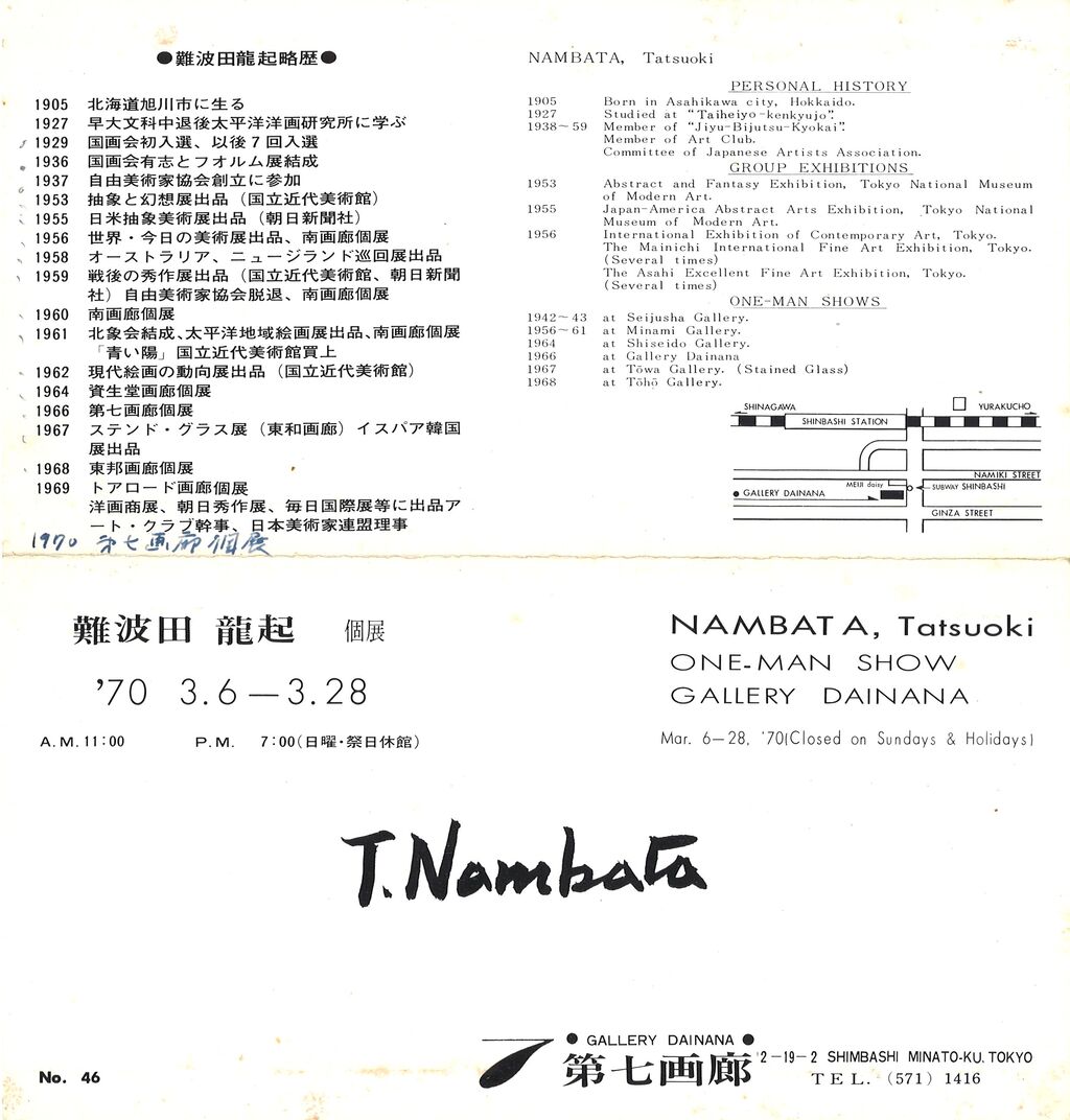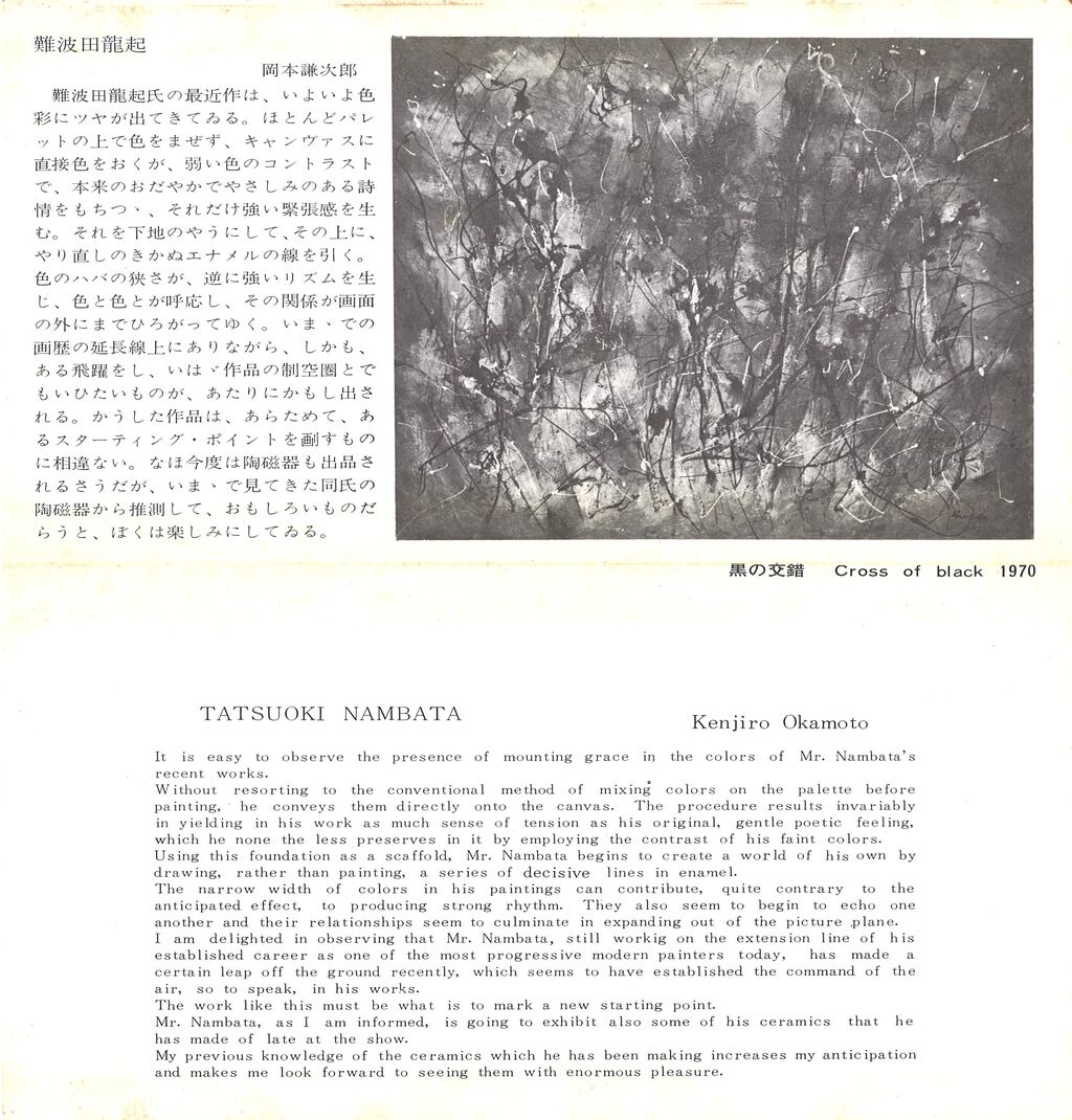1970年2月ということはちょうど50年前、難波田先生のドリッピング時代の絶頂期であり、直ぐに第七画廊または東邦画廊の個展で発表したものではないかと見当をつけました。