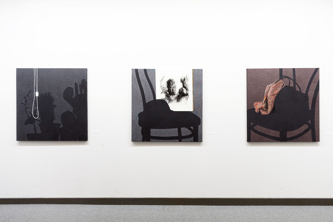 3ギャラリーなかむら展示風景 (左) Sound of Silence 8. (中) Sound of Silence 7. (右) Sound of Silence 9. 各90×90cm ミクストメディア 2020年