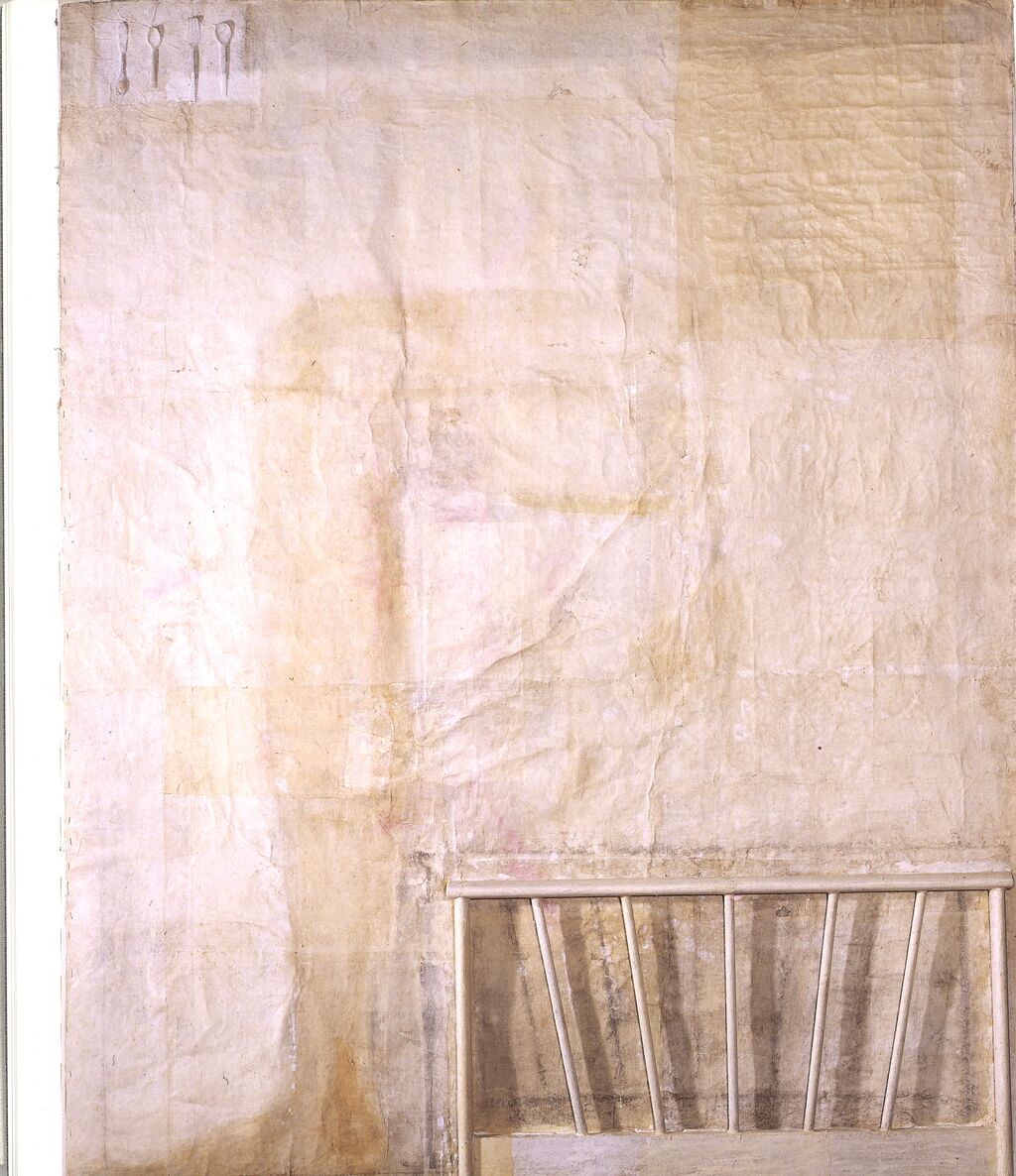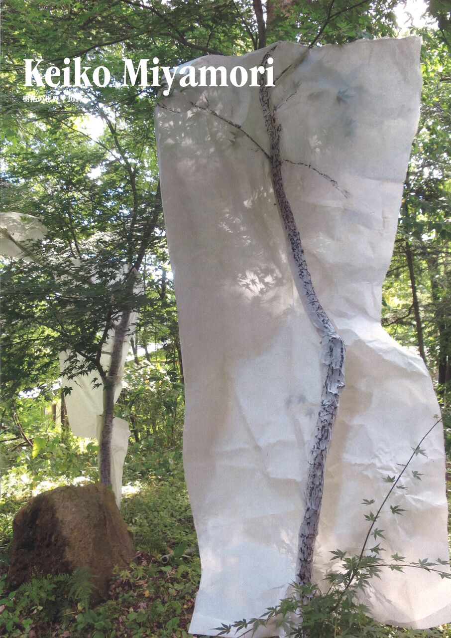 宮森敬子は手透きの和紙とチャコールなどの自然の物を使って、ツリーロビング(木の表面の模様を手透きの和紙でで写し取った作品)で自然物や人工物を包み込むもの、あるいは透明樹脂(プラスチック)で自然物や自分の作品を固める作品を制作しています。現在は米ニューヨークにアトリエを構え、日本と行き来しながら、絵画、彫刻、インスタレーションの発表を行なっています。