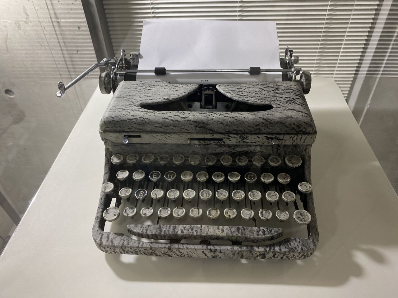 くるむ行為によって、宮森さんはその物との出会いから受ける衝撃を和らげ、その物との適正な距離を保ち、自らの傷つきやすい身を守っているのかもしれないと頭をよぎった。タイプライターも、R・O・S・E の四つの打鍵を残してくるまれている(あ、また、ばら……)。「ローズさんというひとがいたんです」と宮森さんが話してくれた。タイピストのローズさんを思い描こうとしながら、a rose is a rose is a rose. と口のなかで唱えた。