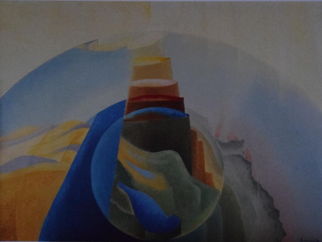 図1:ベネデッタ《タボル山Monte Tabol》、1939年ごろ(キャンバスに油彩、94×128cm、個人蔵)※Massimo Duranti (a cura di), Aeropittura e aeroscultura futuriste, Perugia: EFFE, 2005より。