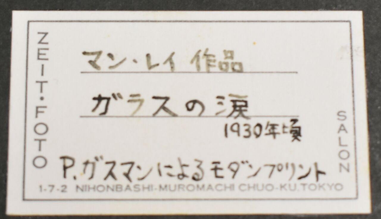 《ガラスの涙》裏面マン・レイ作品を示すスタンプ