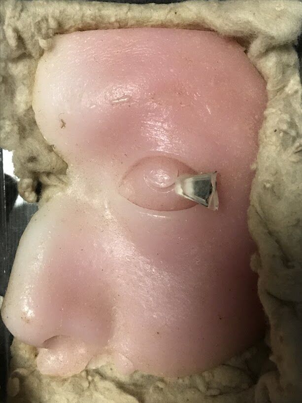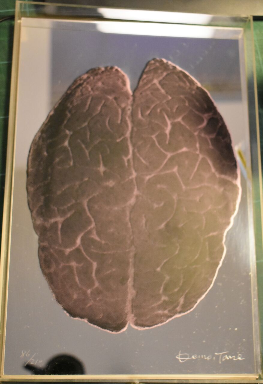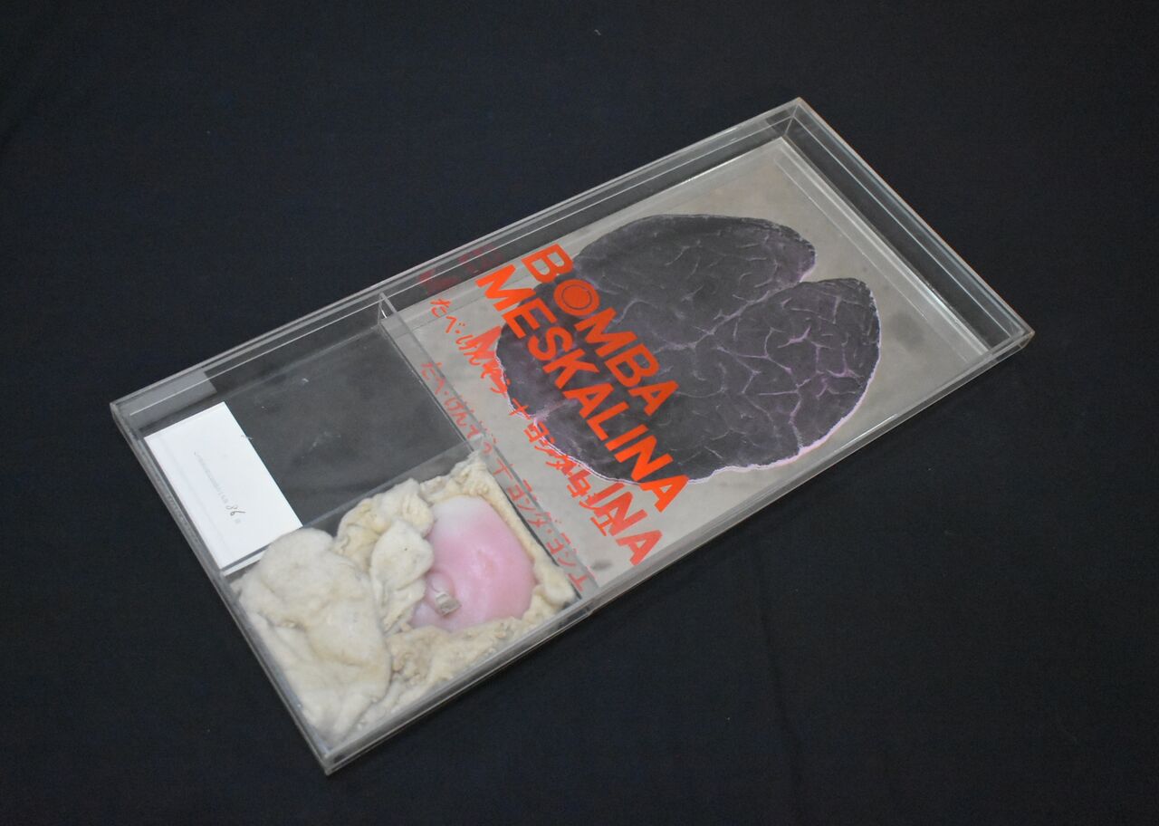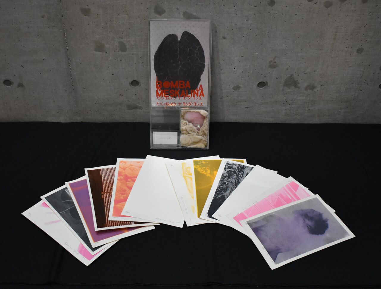内容:たべけんぞうシルクスクリーン12枚、鏡面レリーフ版画1枚(各サイン)、オブジェ(ピンクの人面)1点、限定部数の記入されたカード1葉、アクリルケース