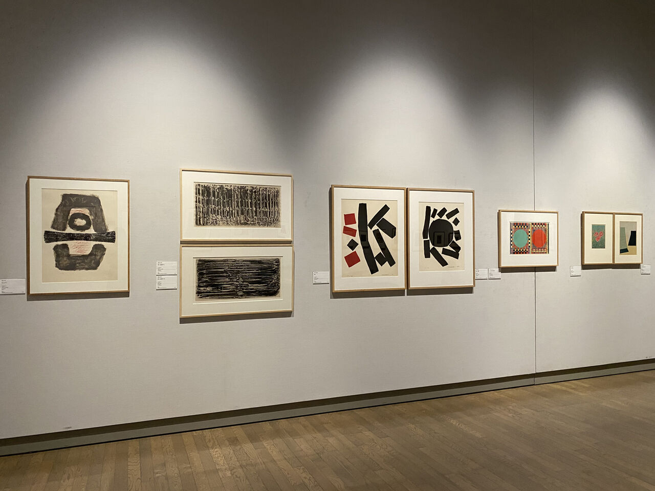 (中央右)村井正誠《黒い太陽》《風》昭和37年(1962年)、(中央左)加納光於《星・反芻学Ⅰ》昭和36年(1961年)《星・反芻学Ⅱ》昭和37年(1962年)ほか