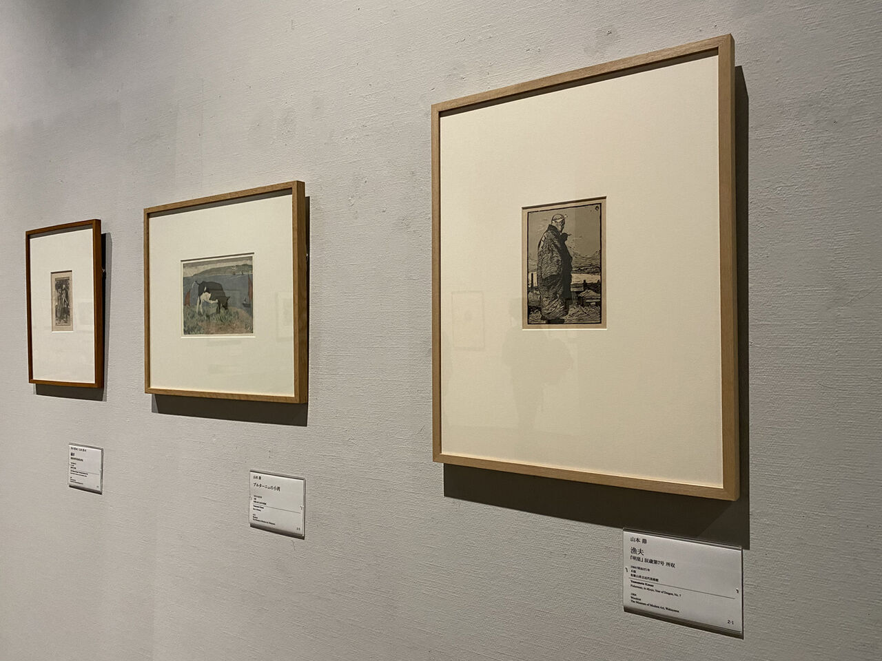 会場でそれが感じとれた。まず、海外から流入した銅版画のエッチング技法、石版画(リトグラフ)、精緻な小口木版などの印刷技術が紹介され、鮮やかな印刷物に親しんだ明治時代の人々の日常が想像できる。そして幼少期にこれらの版画に親しみ、のちに印刷技術から絵画的表現への飛躍を試みた作家たちの眼差しへと導かれる。