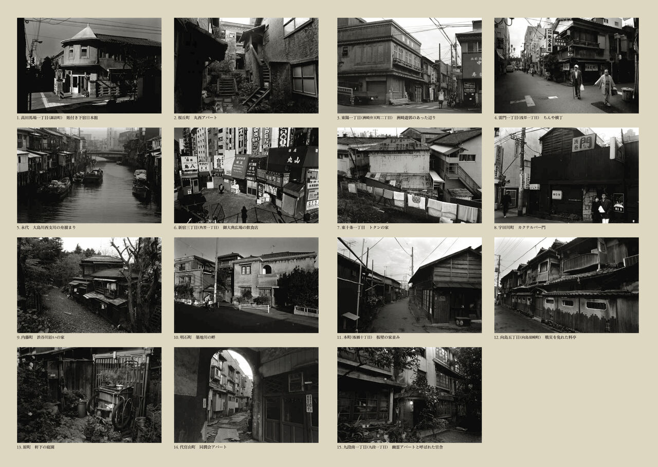 ポートフォリオ『東京ラビリンス』の写真15点は、『昭和二十年東京地図』(筑摩書房、1986)に掲載されたもので、撮影の時期は1985年9月から翌86年2月になる。