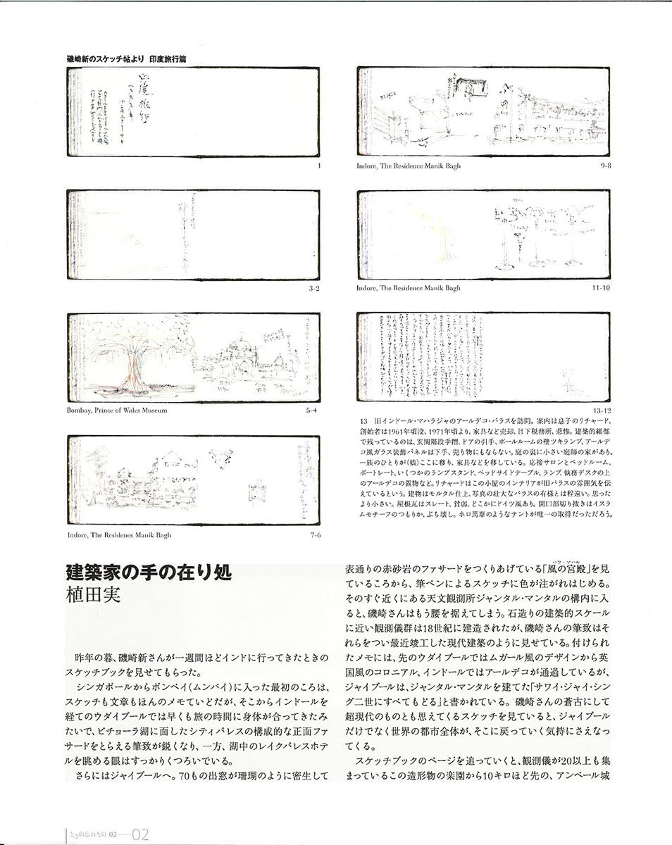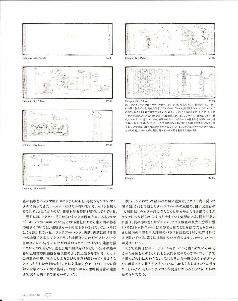 昨年の暮、磯崎新さんが一週間ほどインドに行ってきたときのスケッチブックを見せてもらった。