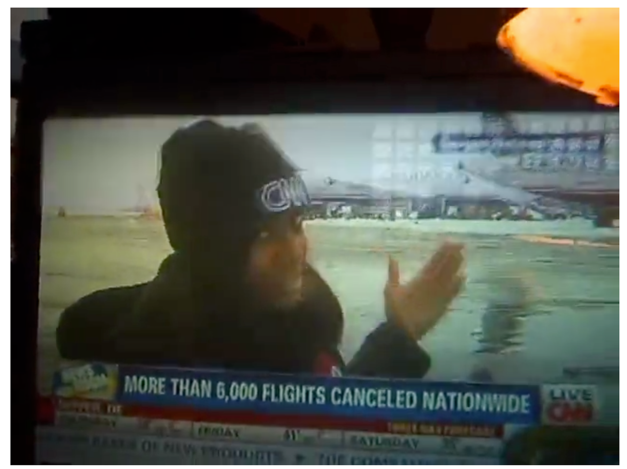 大雪の日。その様子を悲観的に伝えるニュースに向かいメカスは「これは母なる地球からの贈り物なのだ」とテレビの前で主張。「雪よ、振り続けろ!」と叫ぶ。窓の外にカメラを向け「春を待つあいだ、冬を楽しもう」と呼びかけつつ、再びテレビの映像にカメラを移すと、またもや深刻な顔のキャスター。「冬が偉大な詩を書いているというのに、私たちは不満を言っている。明日になったら彼女(キャスター)の事務所に行かずにはいられない」と嘆きつつ、最後にセントラルパークでスキーを楽しむニュースを観て胸をなでおろしている。