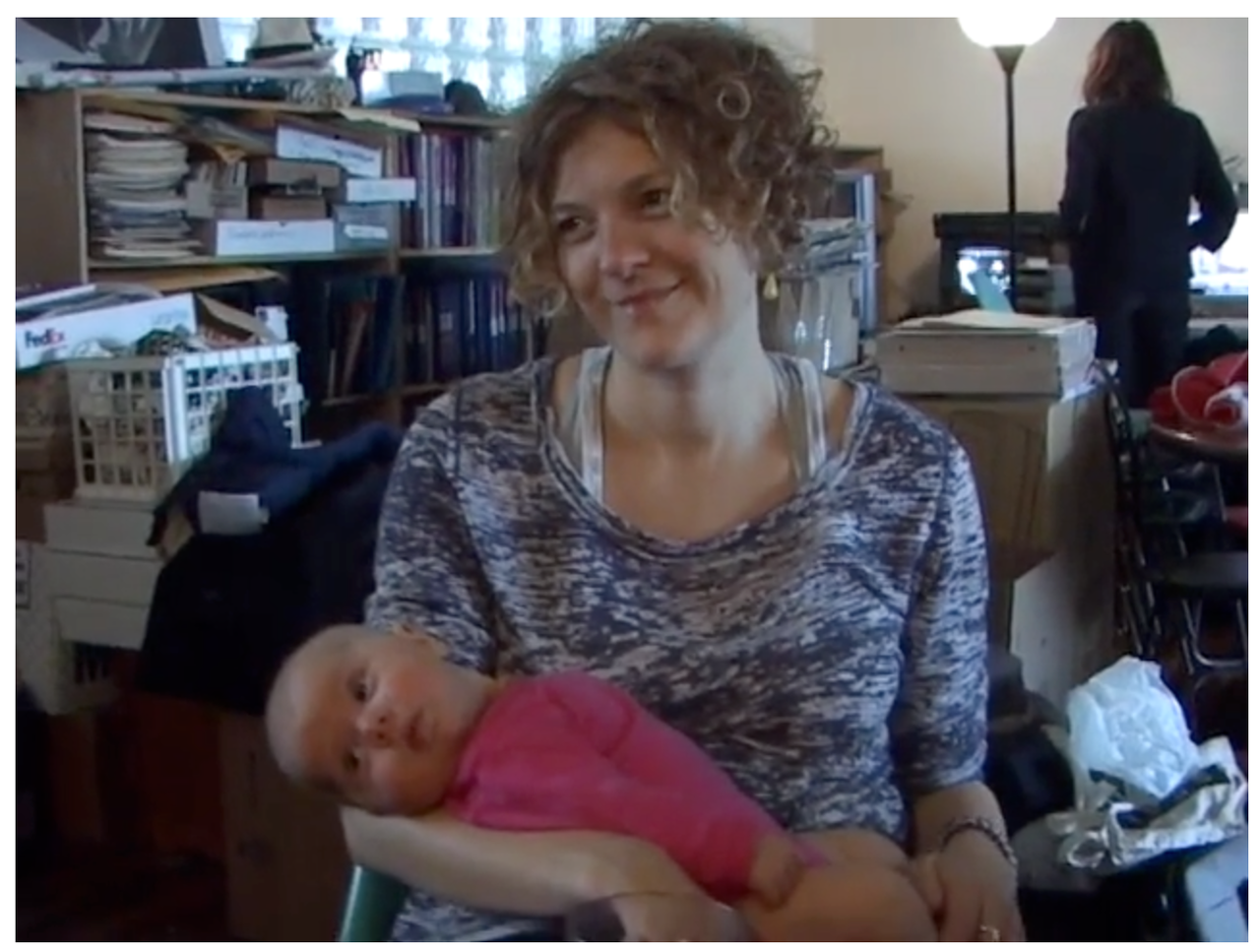 画面に映る赤子を抱いた人物、その目元を観て、それがメカスの娘・ウーナであることに気がつく。いつも傍にいる息子のセバスチャンと違い、NYを離れて暮らすウーナが映像に登場するのは珍しい。ウーナとその娘タルラ(Talula)の日々の様子は、ウーナのInstagramで今も観ることができる。