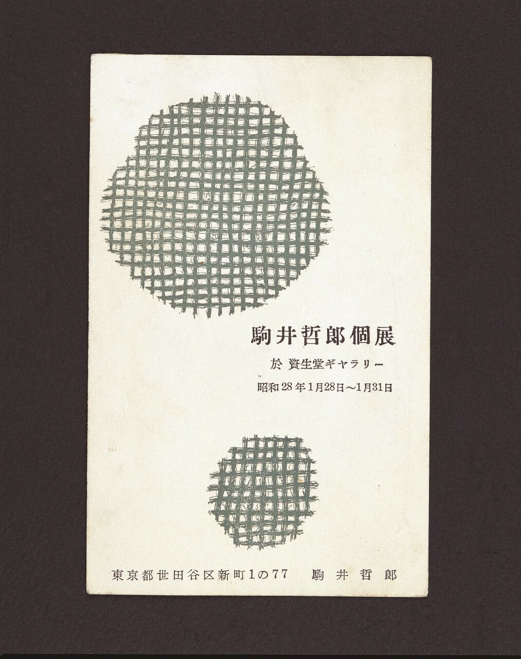 「二つの銅版画個展」は1953年1月28日~31日に資生堂画廊で開催された駒井初の個展(図27)の展評で、雑誌「美術批評」53年3月号に掲載された。『コレクション瀧口修造』第7巻に収録されている。