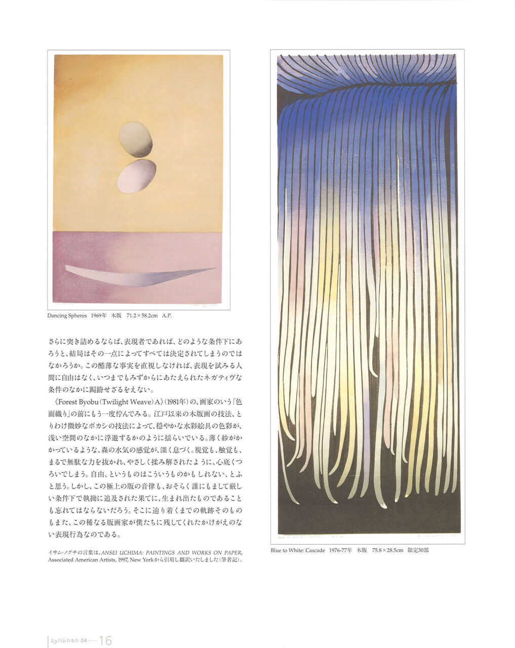 イサム・ノグチの言葉は、“ANSEI UCHIMA: PAINTINGS AND WORKS ON PAPER, Associated American Artists, 1997, New York”から引用し翻訳いたしました(筆者記)。