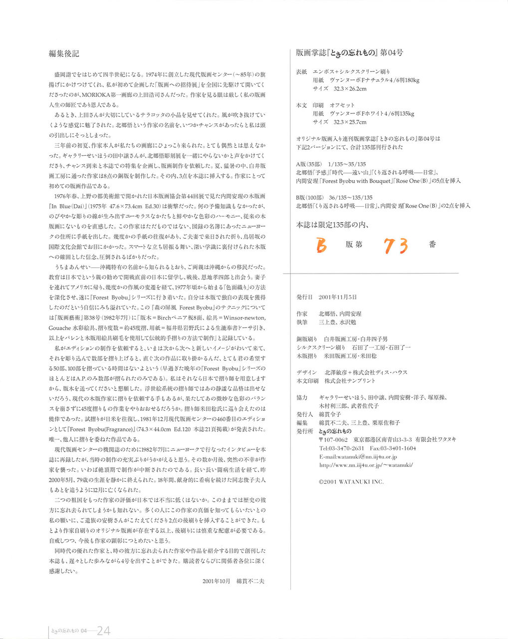 2001年刊行、B4型変形(32×26cm)、綴じ無し、表紙/箔押・シルクスクリーン刷り、本文/24頁、限定135部