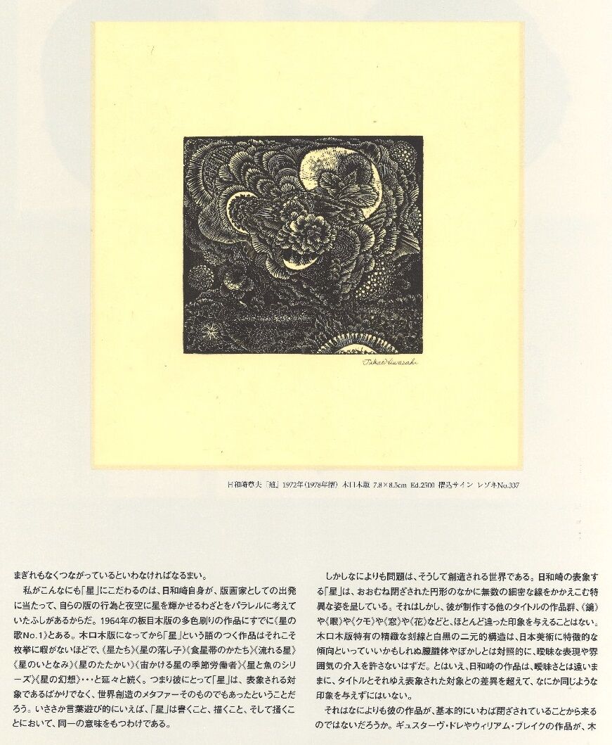 夜空に輝ける星がまた世界を包む薔薇でもある―それが日和崎尊夫の木口木版に対する、たぶん最も美しい形容である。