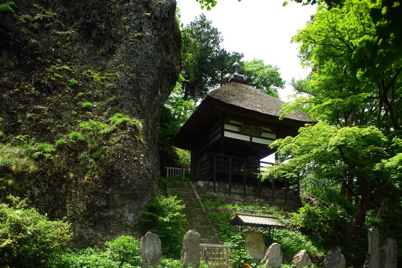 202102平嶋彰彦‗ph3-6V7A2038-bph3 長楽寺の観月堂。左が姨石。周りに多くの文学碑がたつ。2015.5.23
