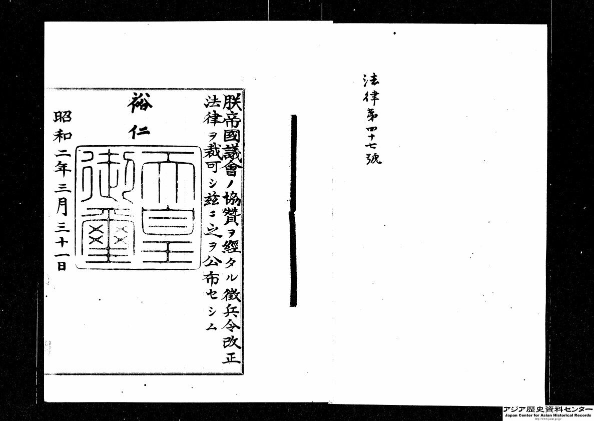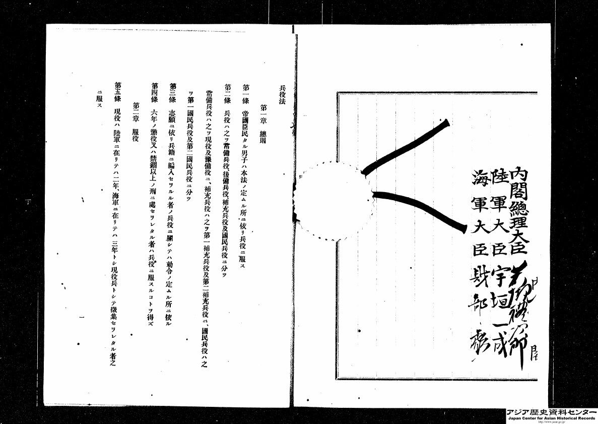 202102小松崎拓男‗図1「兵役法」原本  図1「兵役法」原本