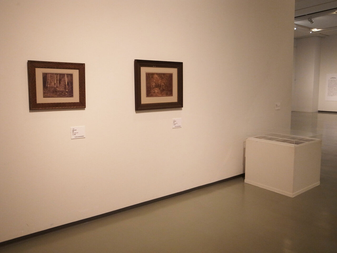 わたしは、これまで大正期の絵画主義的写真を否定的にとらえていたが、認識が変わった。ある学者の指摘によると「良い歴史を知ることは、若者に生きる活力を与える」。良い歴史は家族の歴史に端緒を持ち、いわゆる自虐史観とは異なる。大正期の広小路で写真器材商を営み「愛友写真倶楽部」の創立メンバーの一人で代表も務めた山本悍右の父、五郎の写真11点が並ぶさまは壮観である。『渋温泉』のシリーズなんて白樺、たなびく雲、光の調子で目が洗われる体験、良い塩梅の写真なのです。ゴム印画やガラス乾板描き込みなどの技法を旦那衆の趣味として見過ごしたのは、現物を観ないままカタログや写真集などの印刷物から作られたイメージが独り歩きした結果だったと反省。微妙な紙の繊維と溶液が緩やかに流れるオリジナル写真にしびれます。和洋折衷の大正期日本家屋の応接間に掛けられていたと思われるような木製額に入った大判写真。日高長太郎の『白樺』(1924年)や『晴れたる日』(1914年頃)などの前に立ち、祖父母の家を思い浮かべた(写真ではなくて油絵だったけど)。光と遠近法が目に心地よく、網膜の喜びをことさら否定することもないように思う。デュシャンの革新から100年以上が経ち、わたしたちは盲目の時代に疲れているのかもしれない。