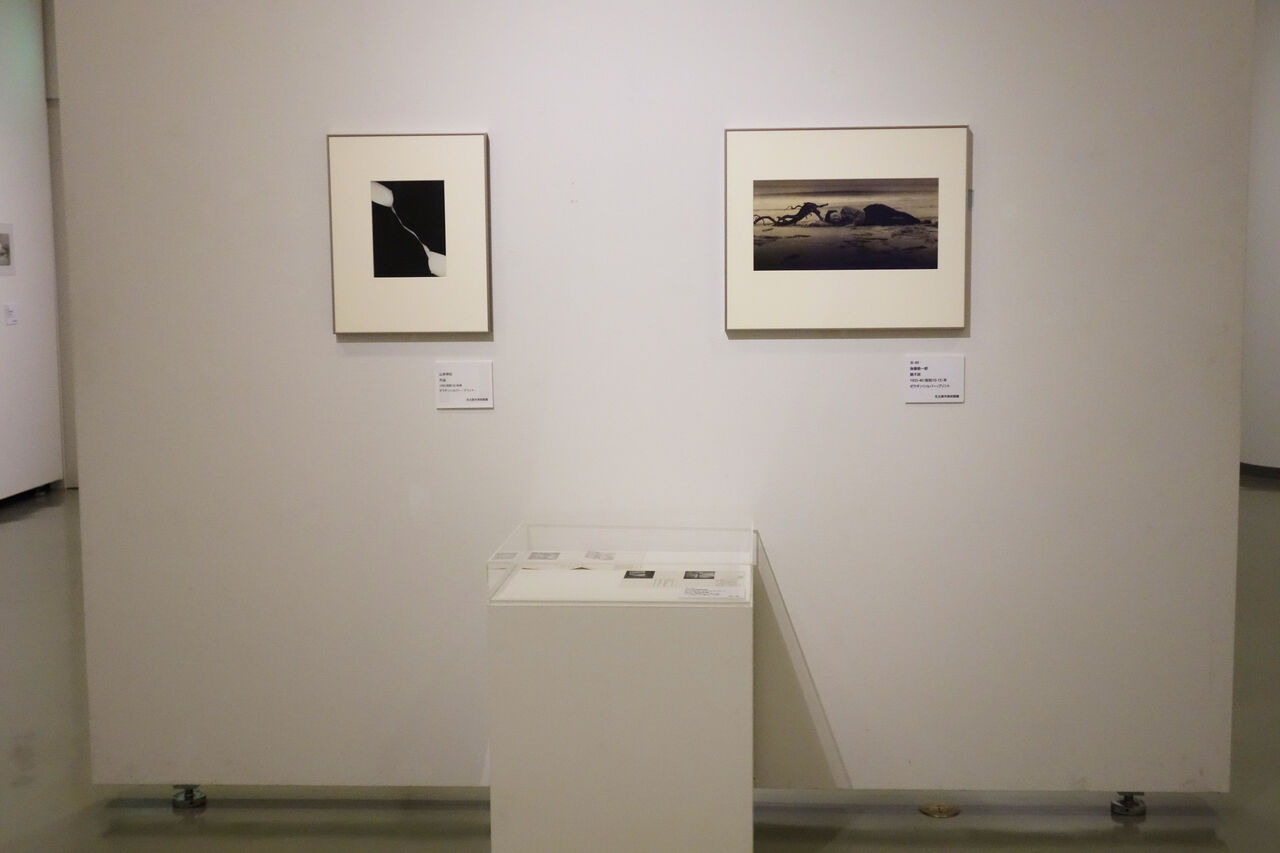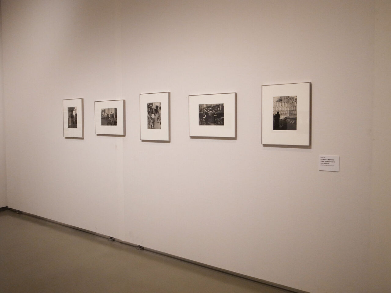二階の会場に上がると中部学生写真連盟のレジェンド・東松照明の写真が並んでいる。ほとんどが豊橋市美術博物館のコレクションと云う。わたしが高校の写真部で写真集『日本』(写研、1967年)を手にして鳥肌が立った体験そのままに伊勢湾台風や天草に取材した写真が掛けられている。水気を充分に含んだ場面が蒸発しながら視覚化され、立ち止まってしまう。別の壁面でも写真集の頁で物語を読むように、前後関係を持った写真からの残像が、米兵、女性、混血児と繋がり強力に時代を浮かびあがらせる。展示の職人技ですな。