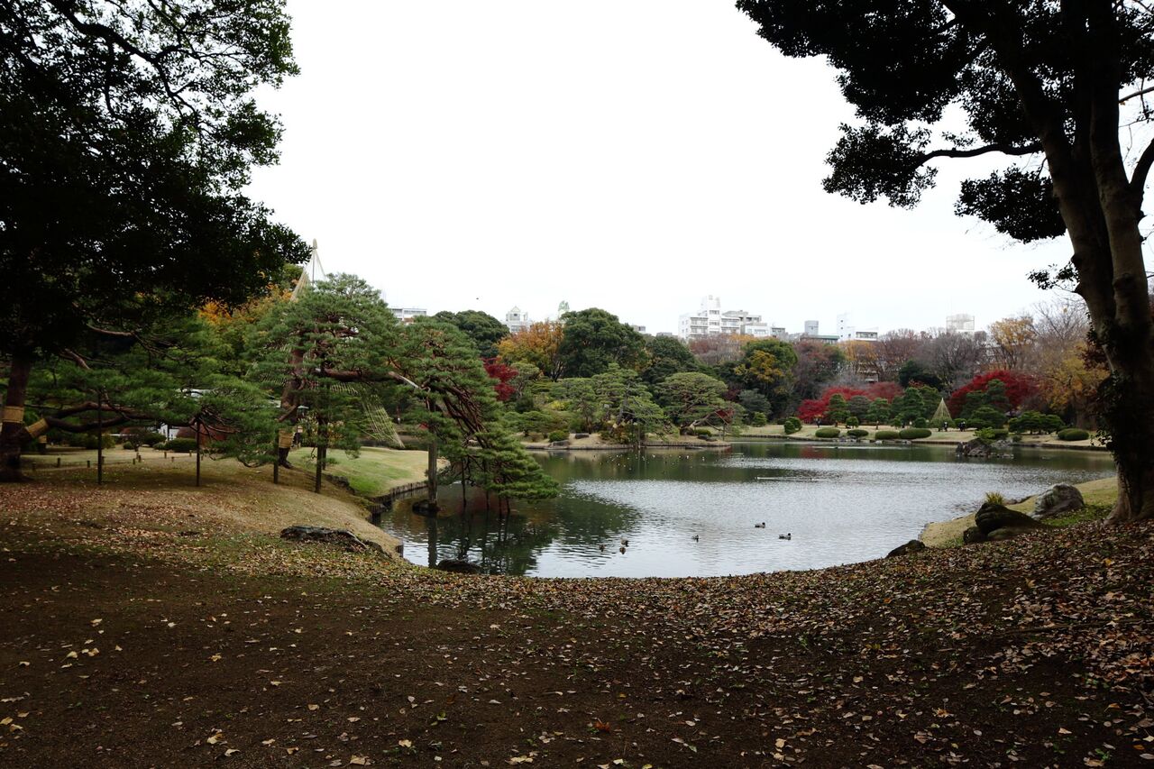 『東京ラビリンス』展を終えて間もない12月10日、六義園を訪れた。40年以上も前になるが、渡り鳥が越冬する都内の名所というテーマで、この名園を撮影したことがある。時期は12月の初旬で、庭園のようすはほとんど忘れてしまったが、オナガガモやマガモが遊ぶ水辺の樹々が、秋色に染まり美しかったことだけは覚えていた。