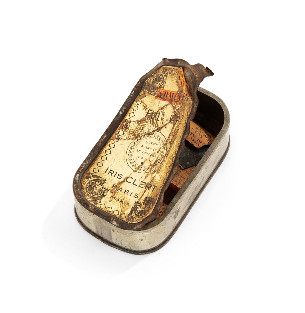 このオブジェは、1960年の作品ですから、二人が受取ったのはまだパリに住んでいた時期だと思います。その後、開けられてしまった缶は、二人と一緒に大西洋を渡ってニューヨークへ移り、60年にわたって、クリストとジャンヌ=クロードの生活空間の片隅に置かれていたわけです・・・そのオブジェが、こんどは日本へやって来ることになりました。実は、二人の手元にあった様々な作家による作品が、2月中旬にオークションに出されたのです。