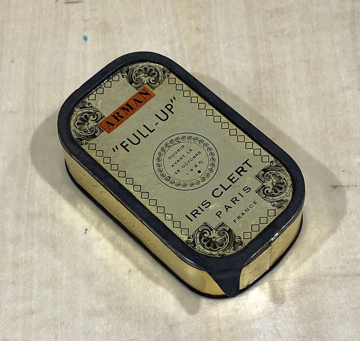 1年半ほど前に、この連載に書かせてもらったもの・・・サーディンの缶詰を模した、アルマンの展覧会案内のためのオブジェ作品です。2019年10月の連載には、私の手元にある現物の写真を掲載しまいたが・・・同じ作品をクリストとジャンヌ=クロードも持っていて、ソーホーの住居のリビングルームの片隅に置かれたアクリルケースの中に収められていました。