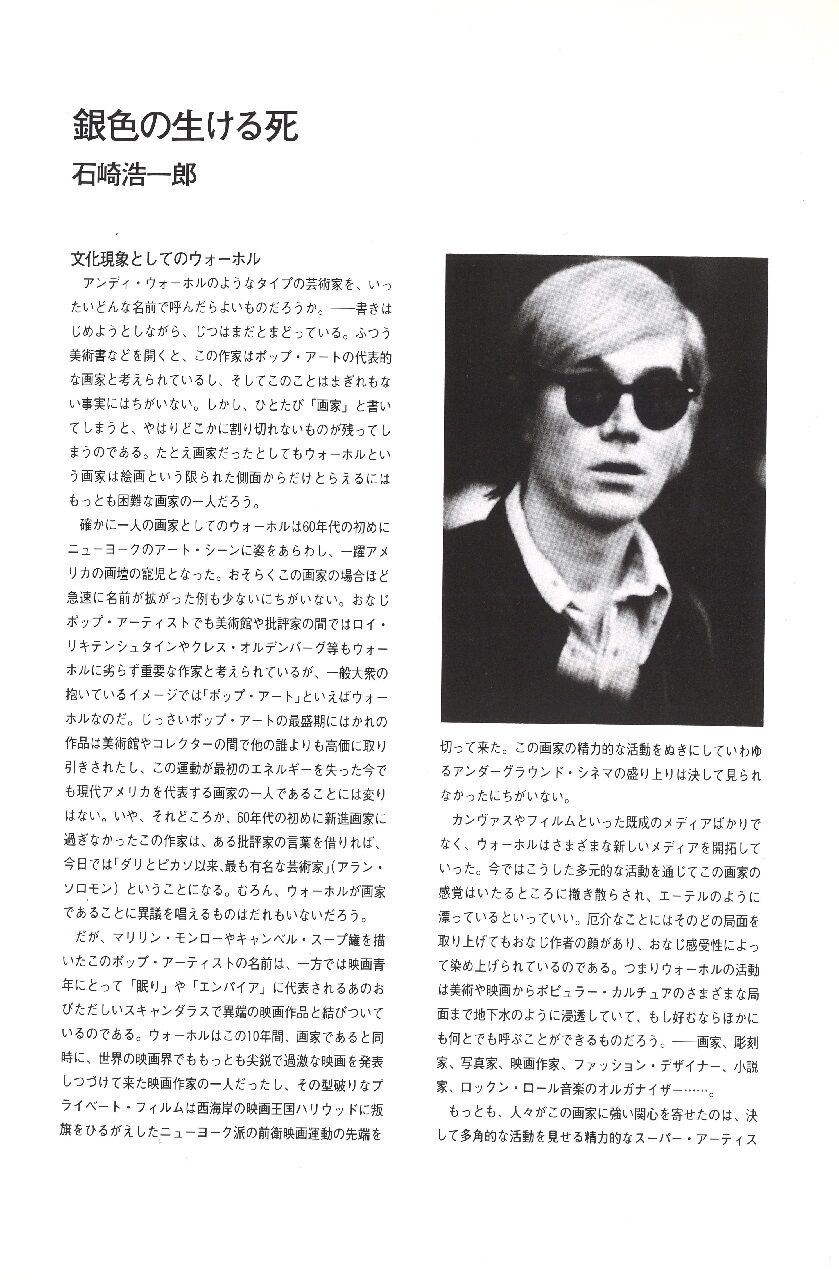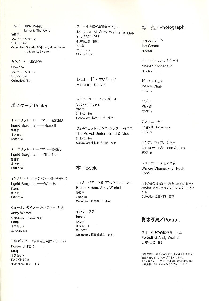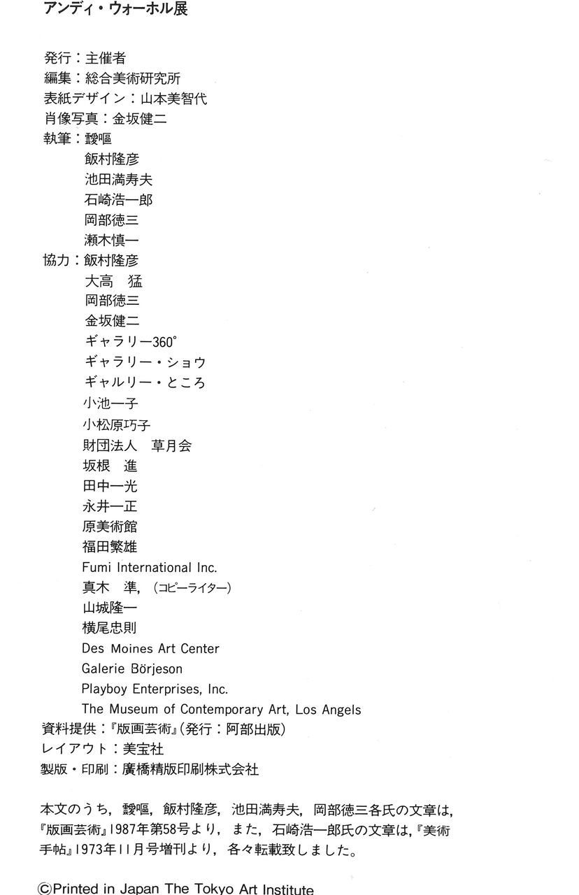 同展の図録をご紹介しますが、出品リストの最後に「ウォーホルの肖像写真14点 Portrait of Andy Warhol 金坂健二氏撮影」と記載されています。