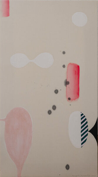 作品の内容ですが、私の作品は抽象画です。抽象画としてそのままの姿で受け止めて欲しいと思っています。なので、作品の内容というよりは、私の最近の思考や、題名などの話をしようと思います。