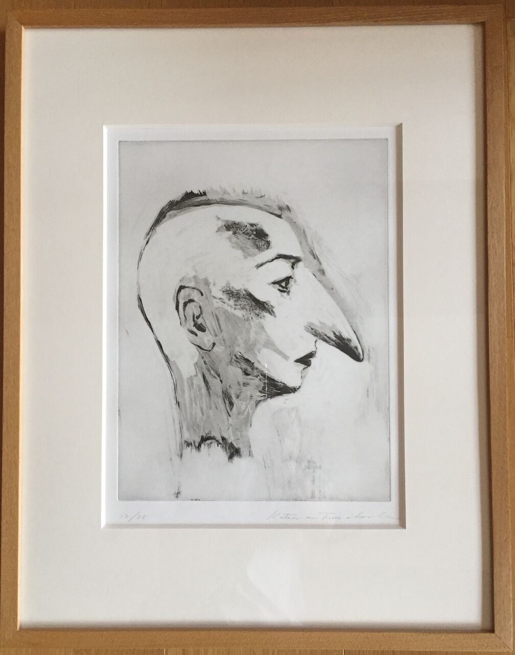 舟越桂 木彫「会議のための習作」 版画 「遠い鏡」1993 リトグラフ盛岡では舟越さんの最初の版画作品(銅版画3点)との出会いもあり、私のコレクションに加わった。