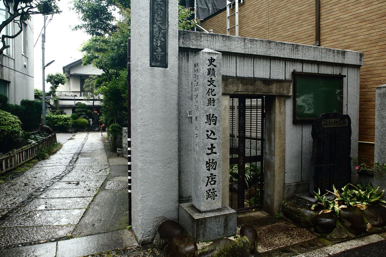 1660(万治3)年、その場所に天栄寺が本郷菊坂から移転してきた。本郷通りを隔てた東側が駒込浅嘉町・同高林寺門前であるが、そこにも土物店ができたことから、街道の両側一帯を駒込土物店と総称するようになった。やがて、町屋が許されるようになり、1745(延享2)年になると、それまでの領主支配から人別が江戸町奉行支配に変わった。駒込の青物市場は、かつては神田市場(現在の多町)を脅かすほど盛んだったということだが、1937(昭和12)年に巣鴨に移転した(註5)。