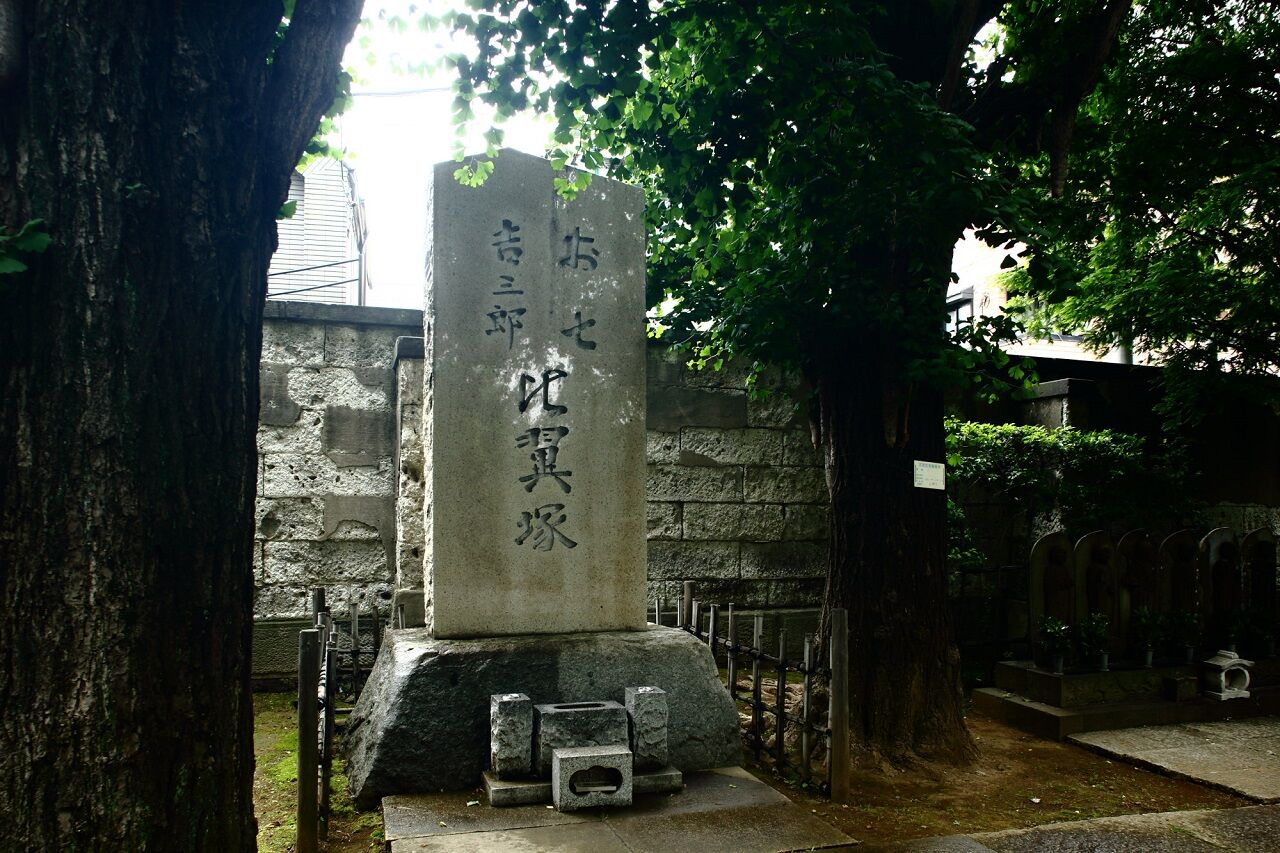 吉祥寺は駒沢大学の前身である栴檀林のあった曹洞宗の名刹である。『好色五人女』や『八百屋お七恋緋桜』では、ここもお七が避難した檀那寺とされていて、境内にはお七・吉三郎の比翼塚が1966(昭和41)年に建立されている(ph9、ph10)。