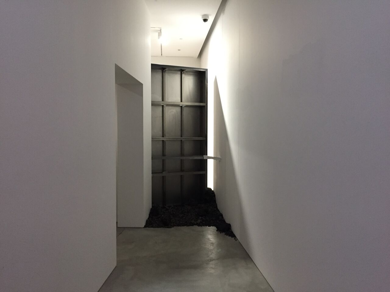 ギャラリーのエントランスに参考としてモノリスが設置されています。モノリスは、『2001年宇宙の旅』でキューブリックらにより生み出された人類の進化を促す石板ですが、昨年からアメリカとヨーロッパの複数箇所でモノリスを参照した物体が出現し、一部はアート・コレクティブThe Most Famous Artistによるものとされながらも、模倣物が次々出現し、新型コロナによるパンデミックへの反応という見方もできます。展覧会の冒頭で見る象徴的なモノリスに対し、順路の終わりで見えるモノリスの背面は、中の構造材が見える空洞でした。モノリスは何を言わんとしてるのか考えさせられます。