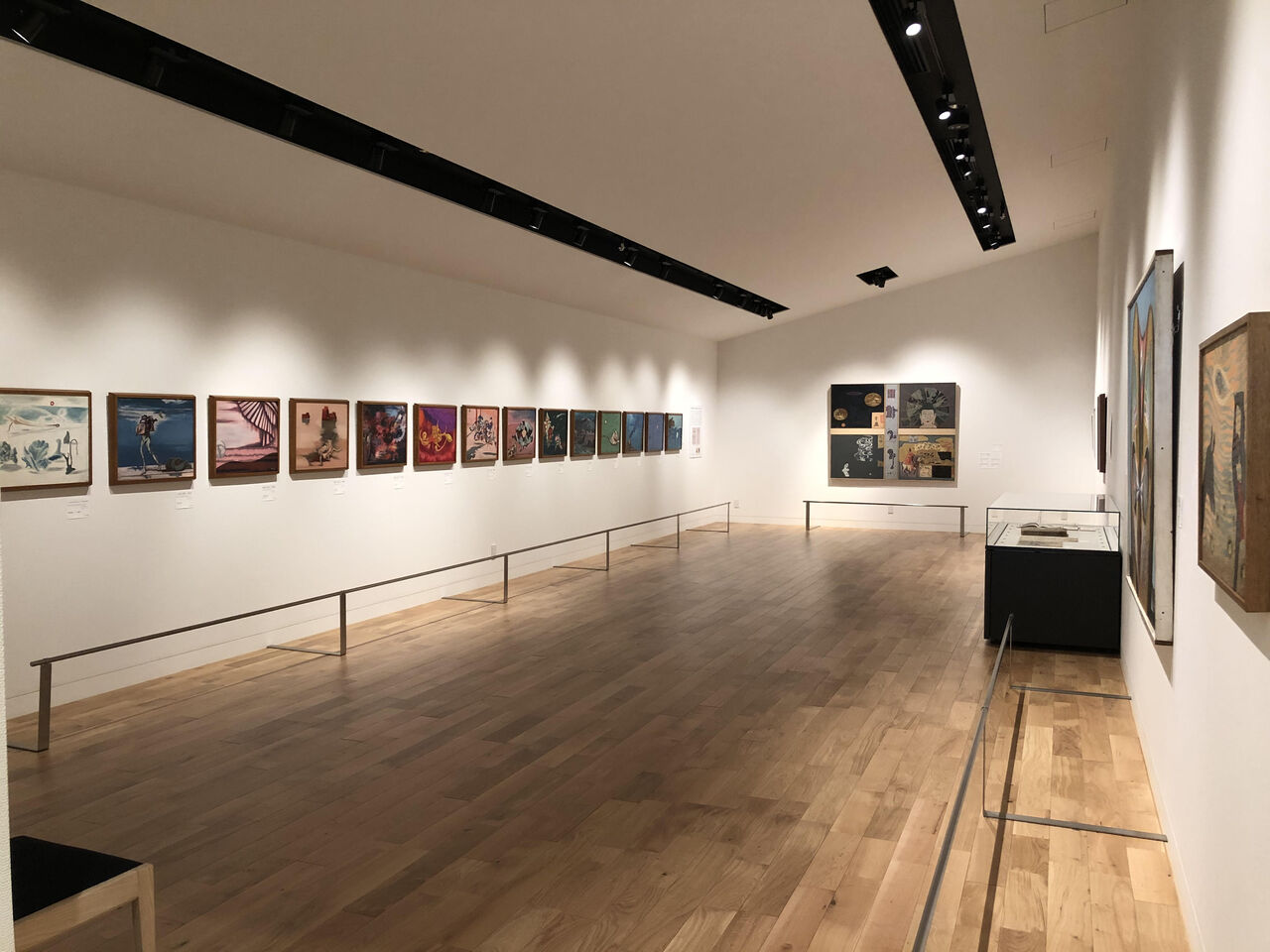 コロナウイルスの影響で調査、拝借が難しかった作品もあるが、画家のご家族、個人、美術館や団体にご協力いただき、展示室は作品や資料でいっぱいになった。展示作業を終え、強く感じたのはわざわざ書くまでもないことだが、1、2章と5章の色の違いである。福沢や靉光、松本、麻生らの作品は青や黒などを多用し、重厚な印象がある。一方の5章の北脇、小牧らの作品は朱色や黄色、桃色など伝統的で色鮮やかな作品が多い。