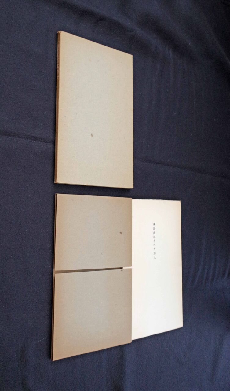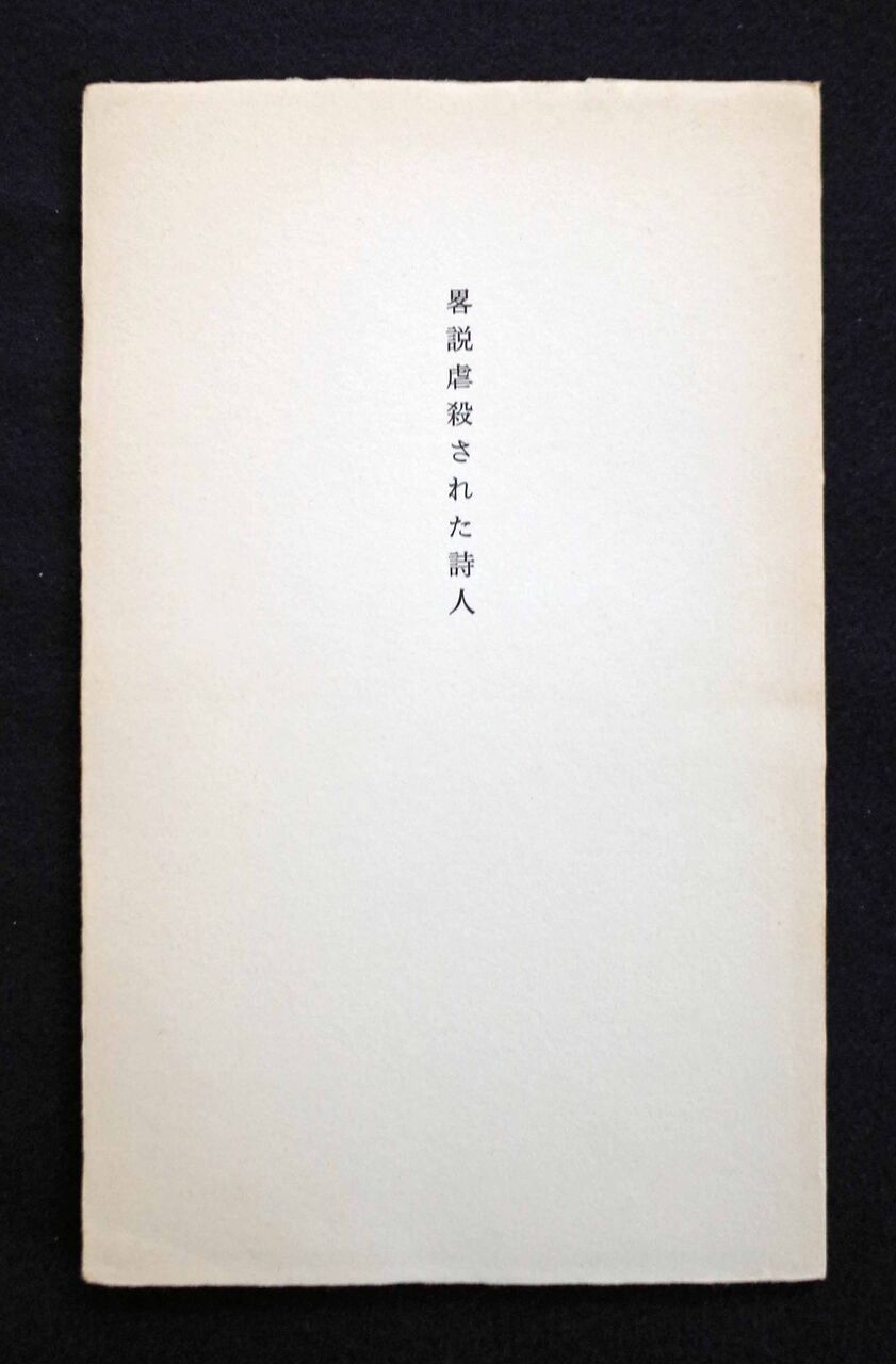 『畧説 虐殺された詩人』、湯川書房 叢書溶ける魚No.3、1972年9月(図1)。限定300部署名入り。変型判(23.8×14.0㎝) 29頁、並製(アンカット)、ボール紙スリーブ函(図2)。ギヨーム・アポリネール「暗殺された詩人」の抄訳、鈴木(瀧口)綾子の口絵(図3)。