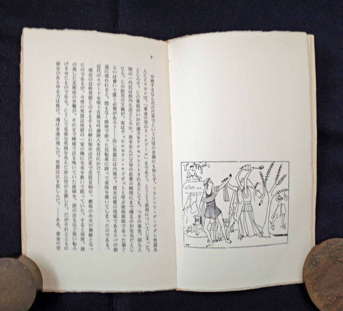「畧説・アポリネール作「虐殺された詩人」は昭和十年九月号の「セルパン」(第一書房、春山行夫編集)に「暗殺された詩人」という題名で掲載された。長く記憶からすら失われていたのを、ヨシダ・ヨシエ氏から古本屋で見附けたといって贈られたのである。これは今日のいわゆるダイジェストであろうが、再録することになり、久しぶりに原作を再読してみて、とりわけ興味深い詩に関する細部などを素通りして、こんな早や口の語り物にしてしまった無謀ぶりにはただあきれ、赤面するばかりである。」