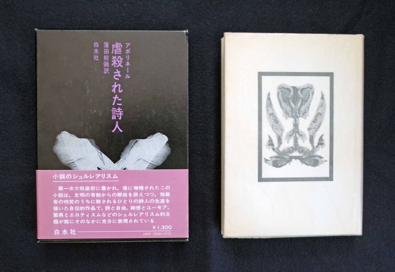 図5瀧口らしい謙遜した書きぶりですが、実際には、詩人クロニアマンタルの望まれざる生誕から悲惨な最期を遂げるまでの生涯を、恋人トリストゥウズとの関係を軸として簡潔にまとめた、見事な抄訳と思われます。窪田般彌氏による全訳が白水社「小説のシュルレアリスム」シリーズの『暗殺された詩人』(1980年。図6)の巻頭に収録されています。同書の巖谷國士氏による解説によると、窪田訳の原書は1916年刊行のLe poéte assassiné, Éd. Bibliothéque des Curieux, Parisで、1914年に書かれていた中編「虐殺された詩人」を巻頭に、1911年頃から発表された計14篇の独立した短篇を配し、最後に「仮面の砲兵伍長奇談すなわち蘇生した詩人」によって、全巻を一挙に関連づけながらしめくくるという、変則的な小説集の形をとったものとされています。