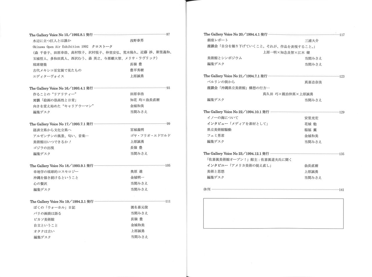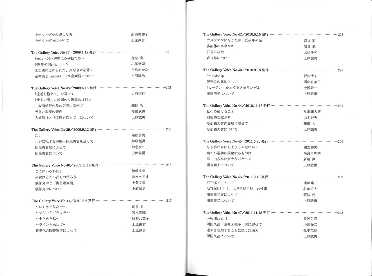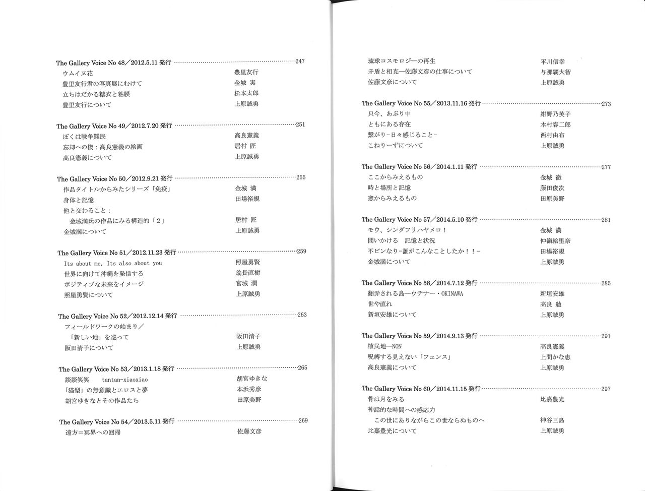 そのおひとり、上原誠勇さんの画廊沖縄がめでたく40周年を迎え、画廊情報誌として1988年から刊行してきた『The Gallery Voice』の60号までを一冊にまとめ(限定200部)、送ってくださいました。