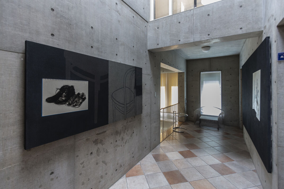 随分と前から作家と打ち合わせを重ね、コンクリート打ち放しの空間にきちっと収まるようにmm単位での展示計画を練り、新作のミクストメディアからラミネート技法をつかった銅版画など13点を展示したのですが、遠方の作家も在廊できず、主催者としては無念極まりない仕儀となりました。