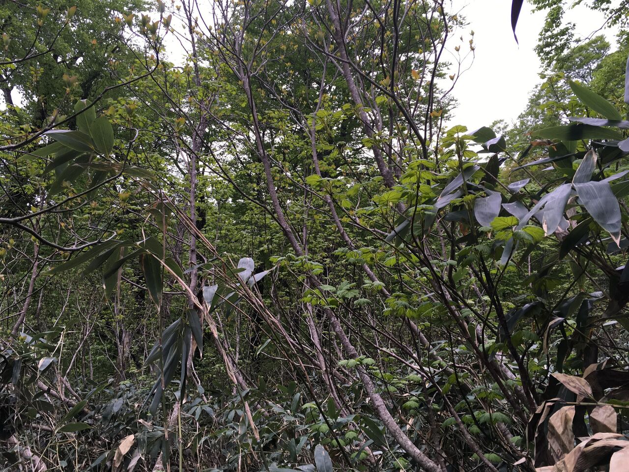 (連れて行ってもらった山の様子。根曲がり竹が群生する茂みから。)