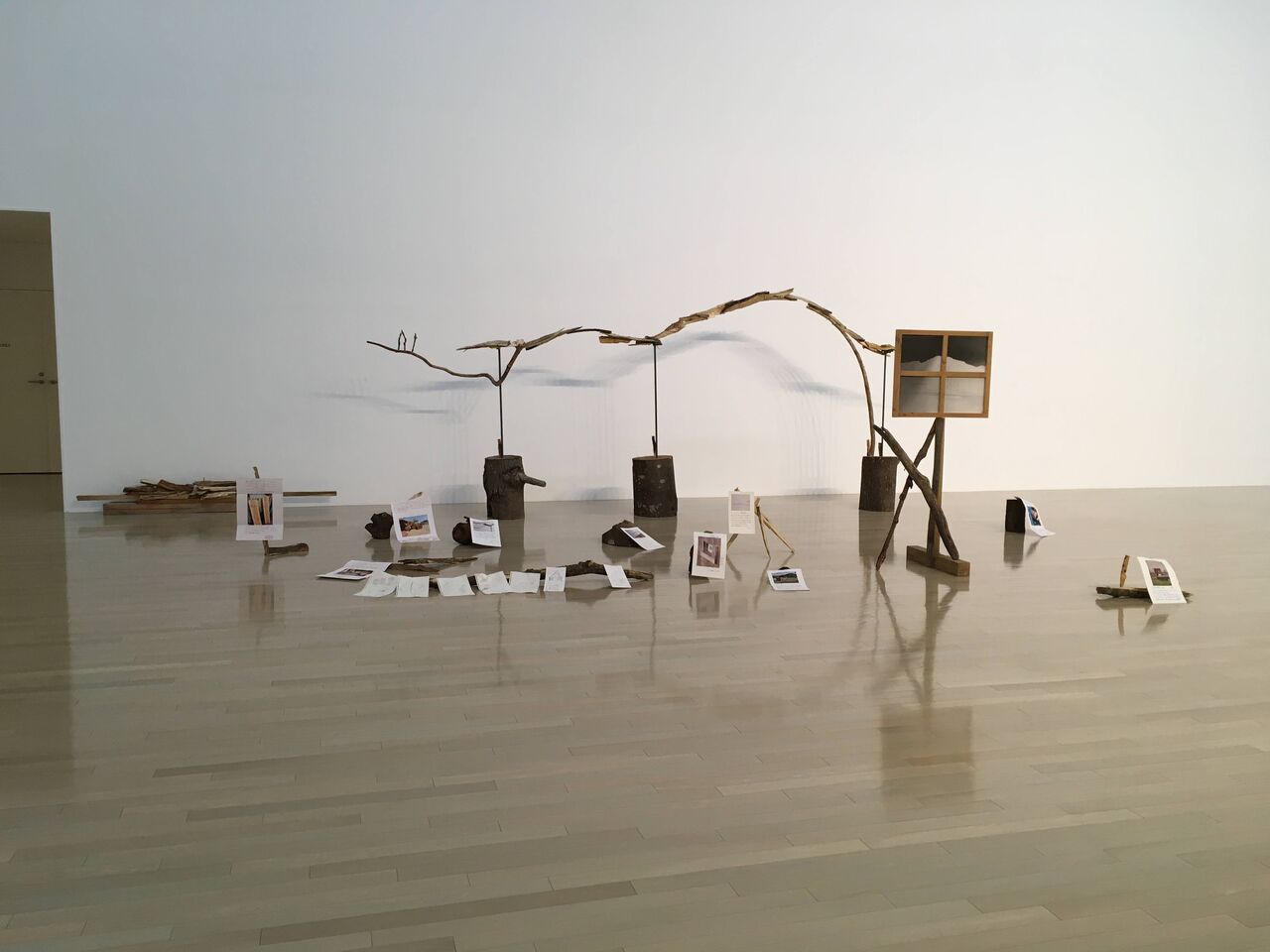 数日間、秋の宮で作業して得た諸々の制作物は、秋田市の文化創造館へと運びいれた。作業成果のひとまずの報告である。やはり展示をしてみて分かる、得られることも多い。特に、制作した”山の輪郭模型”は、それ自体の造形よりも背後の白壁に写し出されるその造形の影の揺らぎ、ぼんやりとした質感のほうがずっと大事であった。秋田市文化創造館の展示室は天井高がとても高く、大きなトップライトがあるのが特徴だが、その展示室の特性あってのこの影、であった。